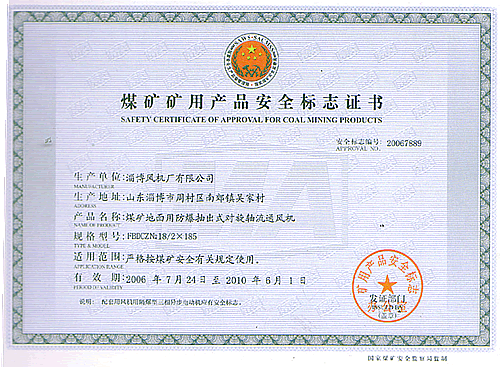 產(chǎn)品均獲機(jī)械部、煤炭部和煤科總院頒發(fā)的生產(chǎn)許可證、鑒定證書和MA安全標(biāo)志。K系列礦用節(jié)能風(fēng)機(jī)獲國(guó)家星火項(xiàng)目銀獎(jiǎng)和冶金工業(yè)部科技進(jìn)步二等獎(jiǎng)、省科技成果一等獎(jiǎng)等榮譽(yù)稱號(hào)。